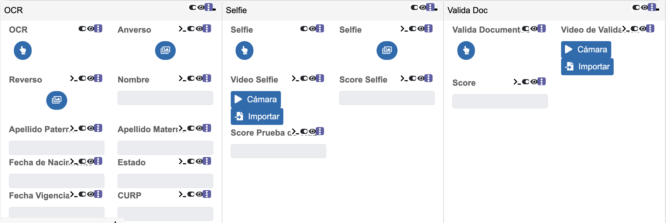 Grupo de componentes que ayudará a tomar el OCR del INE, foto o selfie y validación de video.