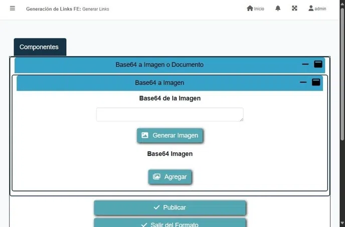 - En el combo box de componentes seleccionamos la opción Conversión Base64 a Imagen o Documento y Viceversa.