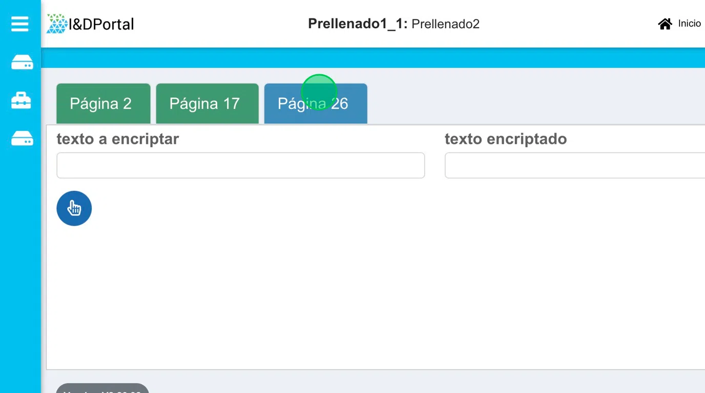 Al abrir la plantilla podemos observar los elementos configurados, agregamos el texto que se desea encriptar en el elemento Texto a Encriptar, en este caso abc y damos clic en el bot贸n, el resultado del encriptado se observar谩 en el elemento Texto Encriptado.