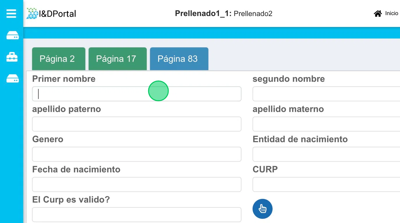 Al abrir la plantilla podemos observar los elementos configurados, agregamos en los elementos Primer Nombre, Segundo Nombre, Apellido Paterno, Apellido Materno, Fecha de Nacimiento, Género, Entidad de Nacimiento y CURP daremos clic en el botón, al ejecutarse el componente el resultado se muestra en el elemento Valido CURP?