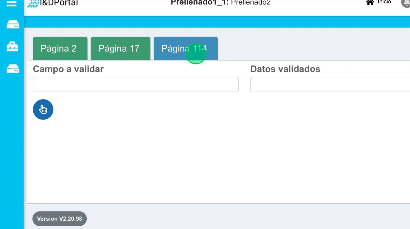 Al abrir la plantilla podemos observar los elementos configurados, agregamos la palabra A1B2C3D4E5 y observamos que al dar clic en el botón en elemento de Datos Validados solo coloca los caracteres de la expresión regular.