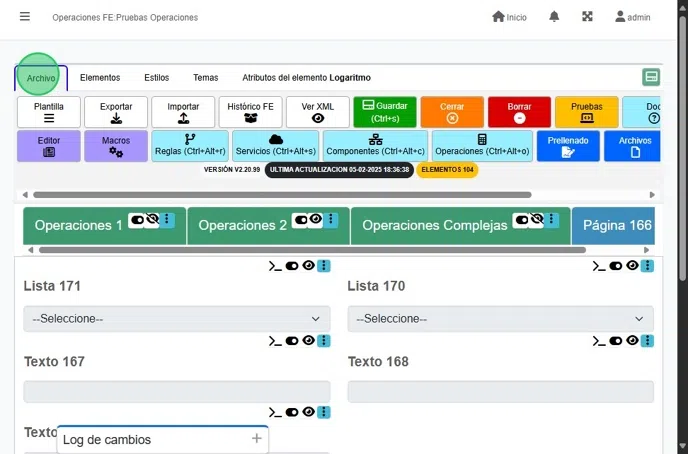 El siguiente ejemplo muestra configuración de la operación solo con 2 elementos de tipo Número.