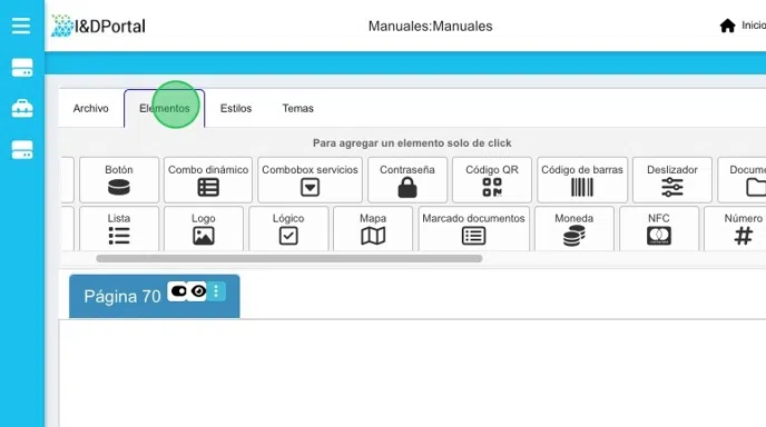 1. Damos clic en la pesta帽a Elementos y se agregan 7 elementos de tipo Texto Lineal y 1 elemento de tipo Bot贸n.