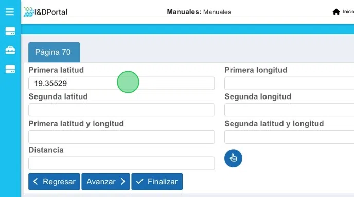 En los campos "Primera latitud y longitud" y "Segunda latitud y longitud" se colocan ambos campos previamente configurados completos y damos clic en el bot贸n.