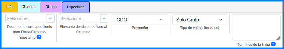 | Configura los términos y condiciones de la firma. |