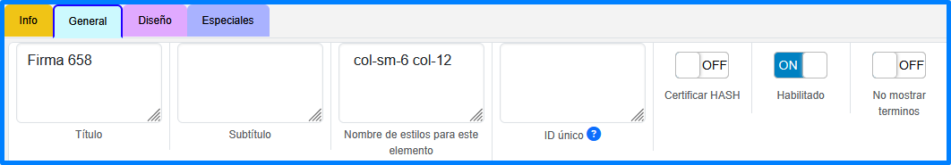 En esta pestaña se puede manipular las propiedades generales del elemento.