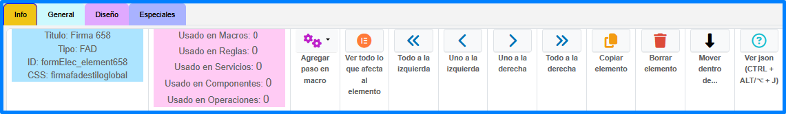 Contiene las herramientas para manipular y muestra la información del elemento.