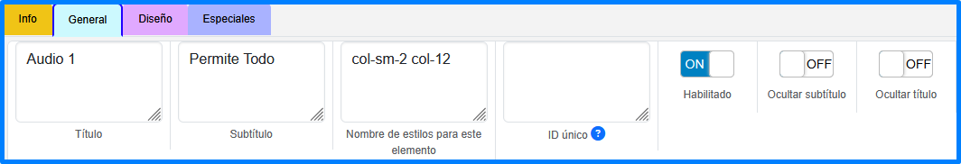 | Habilita o Deshabilita el elemento, también se puede realizar esta acción desde el elemento en la página. | |