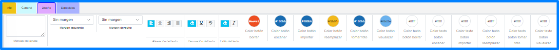 Estos se dividen en 4 grupos: Info, General, Diseño y Especiales.