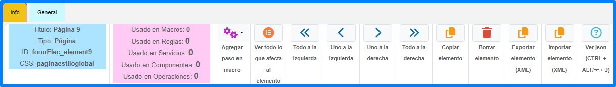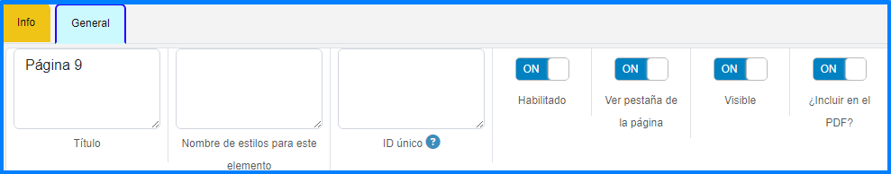 En esta pestaña se puede manipular las propiedades generales del elemento.