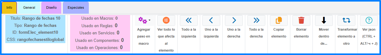 En esta pestaña se puede manipular las propiedades generales del elemento.