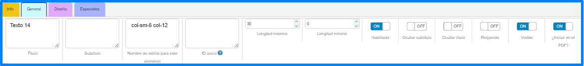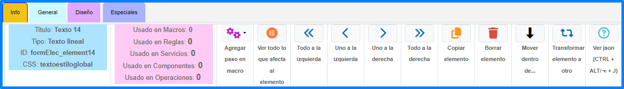 En esta pestaña se puede manipular las propiedades generales del elemento.