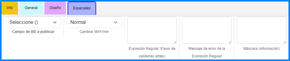 | Campo para agregar la expresión regular que valida que el campo tenga el formato correcto. | |