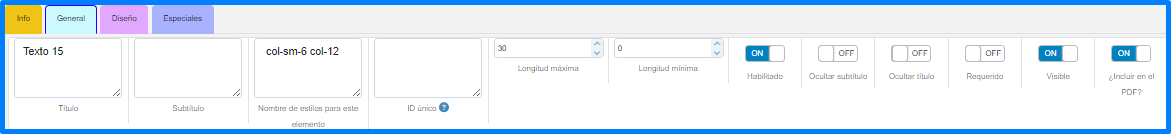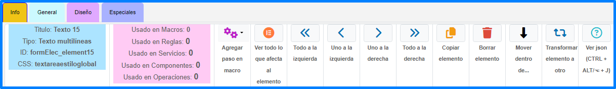 En esta pestaña se puede manipular las propiedades generales del elemento.