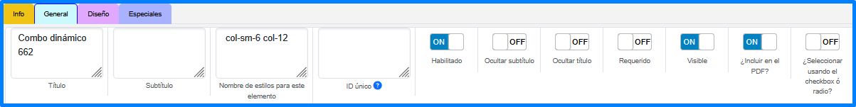 El elemento Combo Dinámico es utilizado para obtener información de catálogos dinámicos, donde se puede obtener información de catálogos internos del portal para mostrar las opciones y que el usuario final pueda tomar una decisión.
