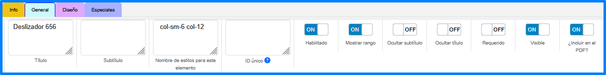 El elemento Deslizador permite por medio de un deslizante escoger la opción numérica deseada en el formato electrónico.