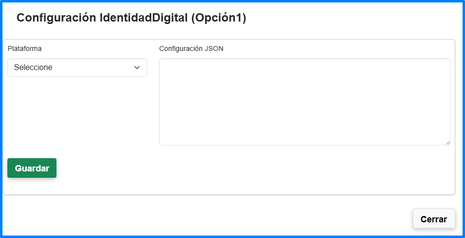 Configuración que tipo de forma de validación va a ejecutar el servicio de IdentidadDigital (Opción1), se puede elegir de entre las opciones: