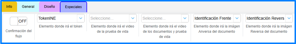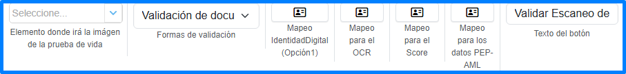 • Validación de Documentos por Video y Prueba de Vida: Captura un video del usuario colocando su identificación para validación de identidad, este video se coloca en un elemento de tipo video previamente configurado.