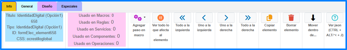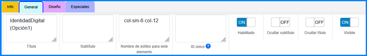 En esta pestaña se puede manipular las propiedades generales del elemento.